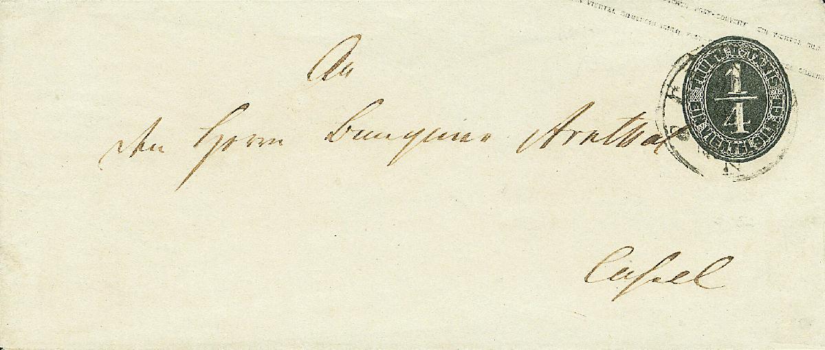 | Zusatzinformationen und Suchstichworte: | Dr. Derichs 170. Auktion 3. Juni 2023 Los 1553 Altdeutschland Thurn und Taxis Ganzsachenumschlag 1/4 Sgr. schwarz, Format "C", mit K1 "Cassel" tarifrichtig als Ortsbrief gelaufen. Der Umschlag wurde gewässert, alle Klappen sind offen. Sonst einwandfrei und in sehr schöner Gesamterhaltung. Neues Fotoattest Sem BPP. (Michel 1.000.-). Zuschlag 90,00 EUR |
