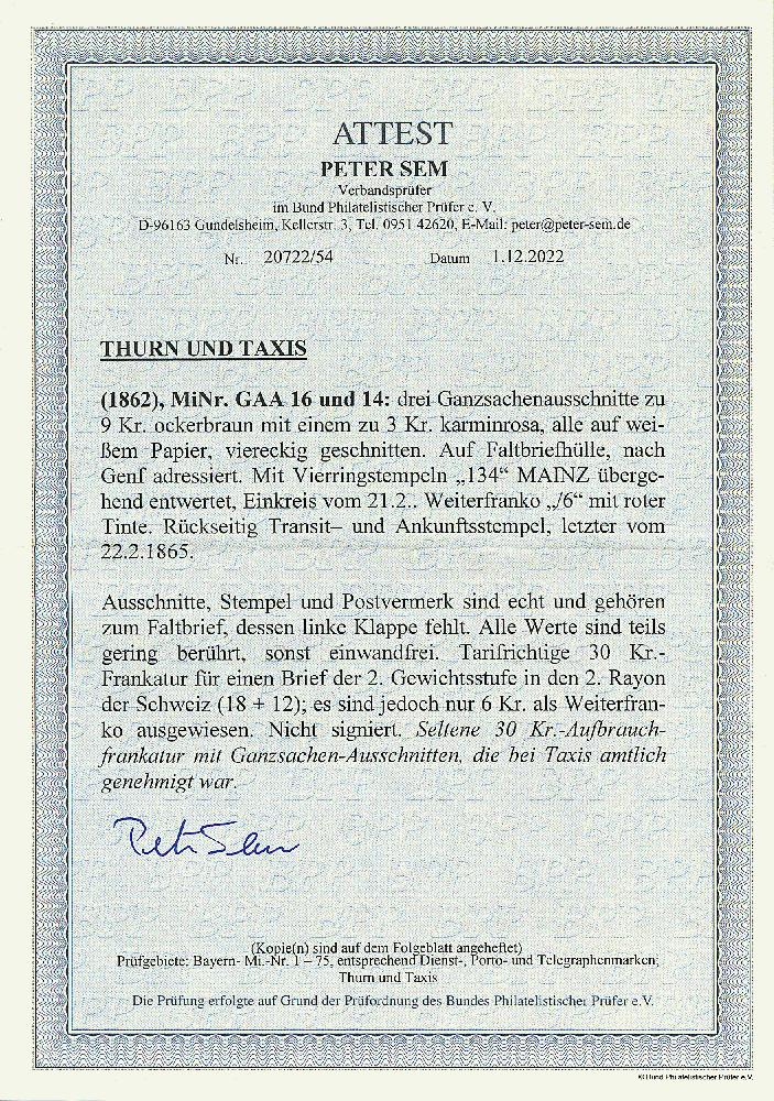 | Prüfgebiet: | Altdeutschland Thurn und Taxis |