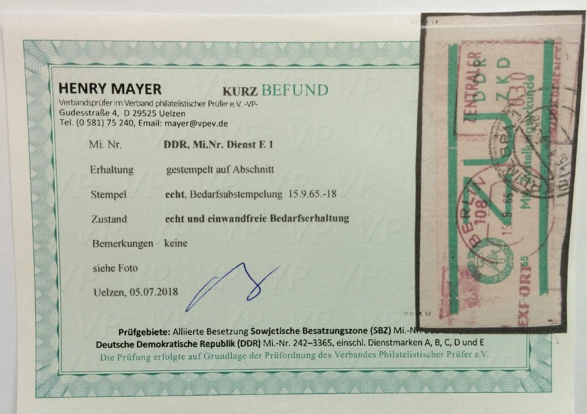 | Prüfgebiet: | DDR Dienstmarken - E Zustellungsurkunden |