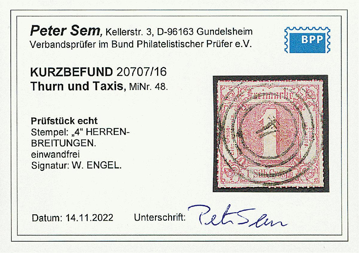 | Prüfgebiet: | Altdeutschland Thurn und Taxis |