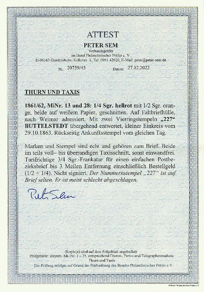 | Prüfgebiet: | Altdeutschland Thurn und Taxis |