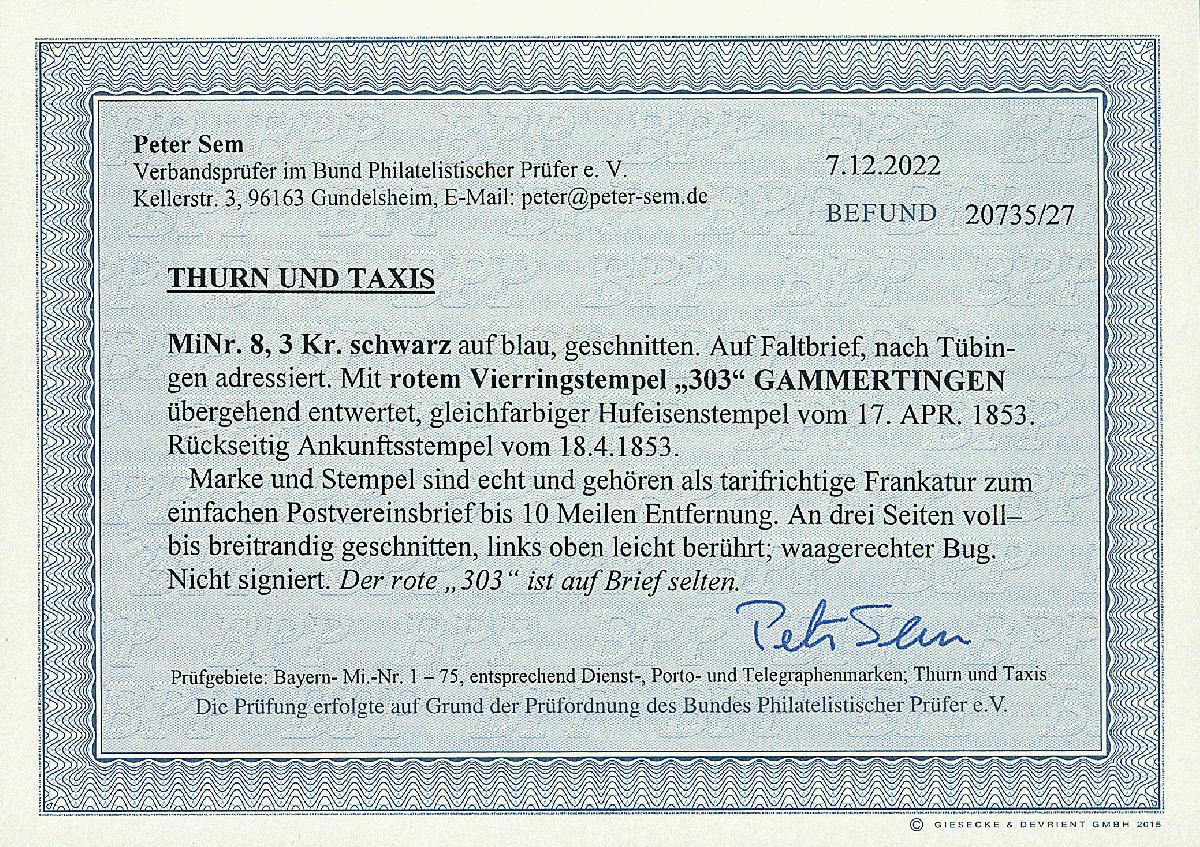 | Prüfgebiet: | Altdeutschland Thurn und Taxis |