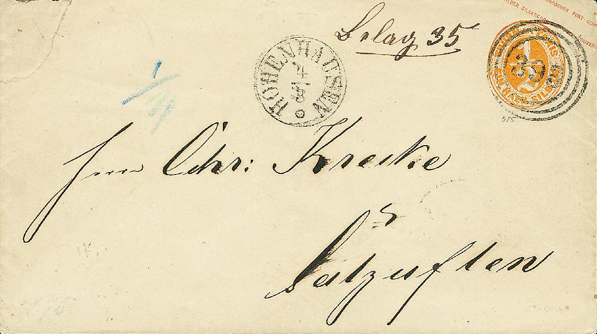 | Zusatzinformationen und Suchstichworte: | Dr. Derichs 170. Auktion 3. Juni 2023 Los 1599 Altdeutschland Thurn und Taxis "393" als Entwerter und nebengesetzter Aufgabe-K1 "Hohenhausen 4/3" (1863) auf Ganzsachenumschlag 1/2 Sgr. orange, Kleinformat, nach Salzuflen. Links oben Eckbeanstandung im Umschlag. Insgesamt ein schönes Ganzstück mit diesem guten Nummernstempel. Neuer Fotobefund Sem BPP. (Handbuch = 400.-). Zuschlag 120,00 EUR |