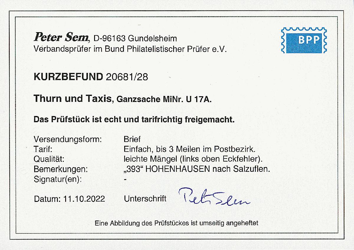 | Prüfgebiet: | Altdeutschland Thurn und Taxis |