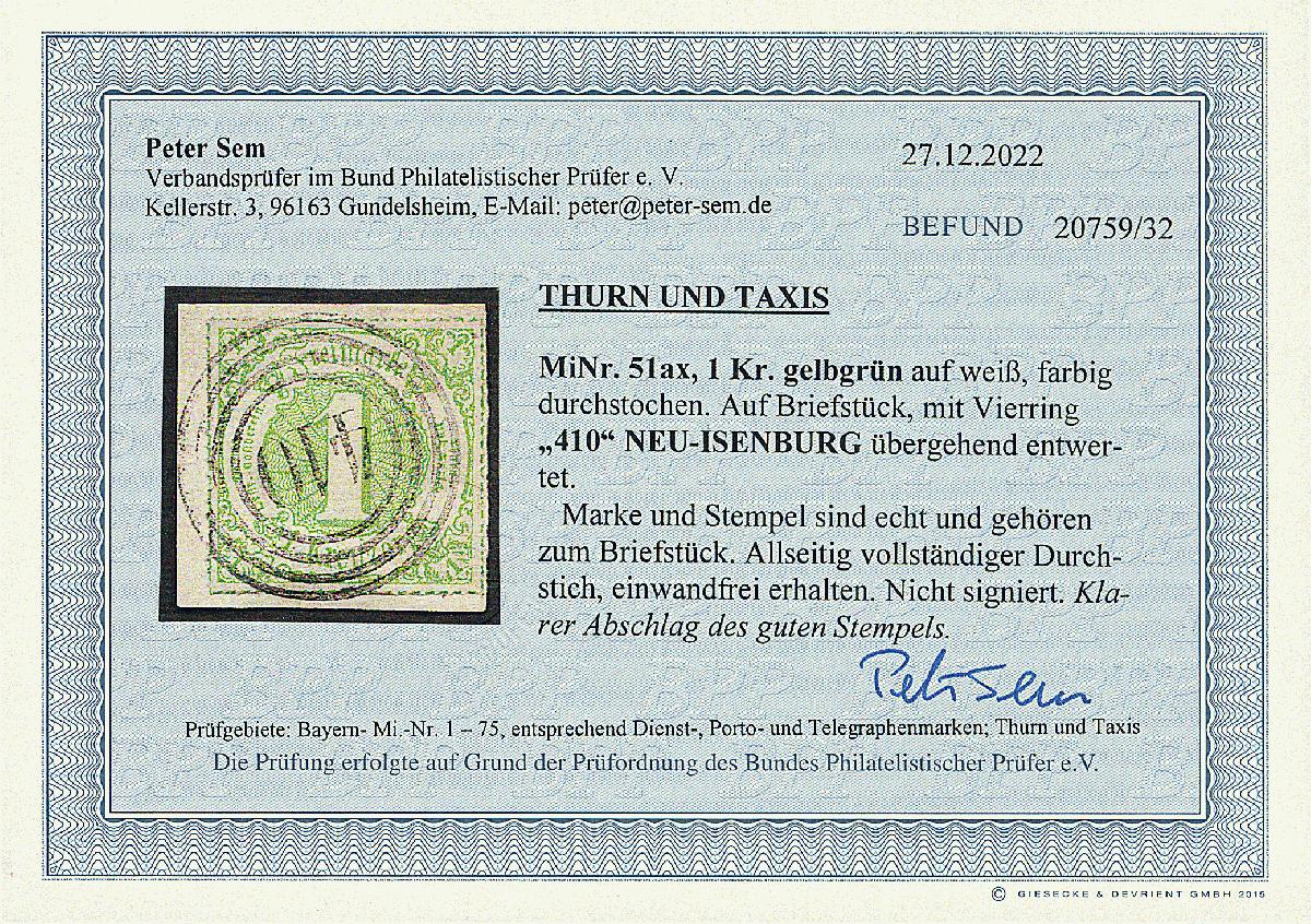 | Prüfgebiet: | Altdeutschland Thurn und Taxis |
