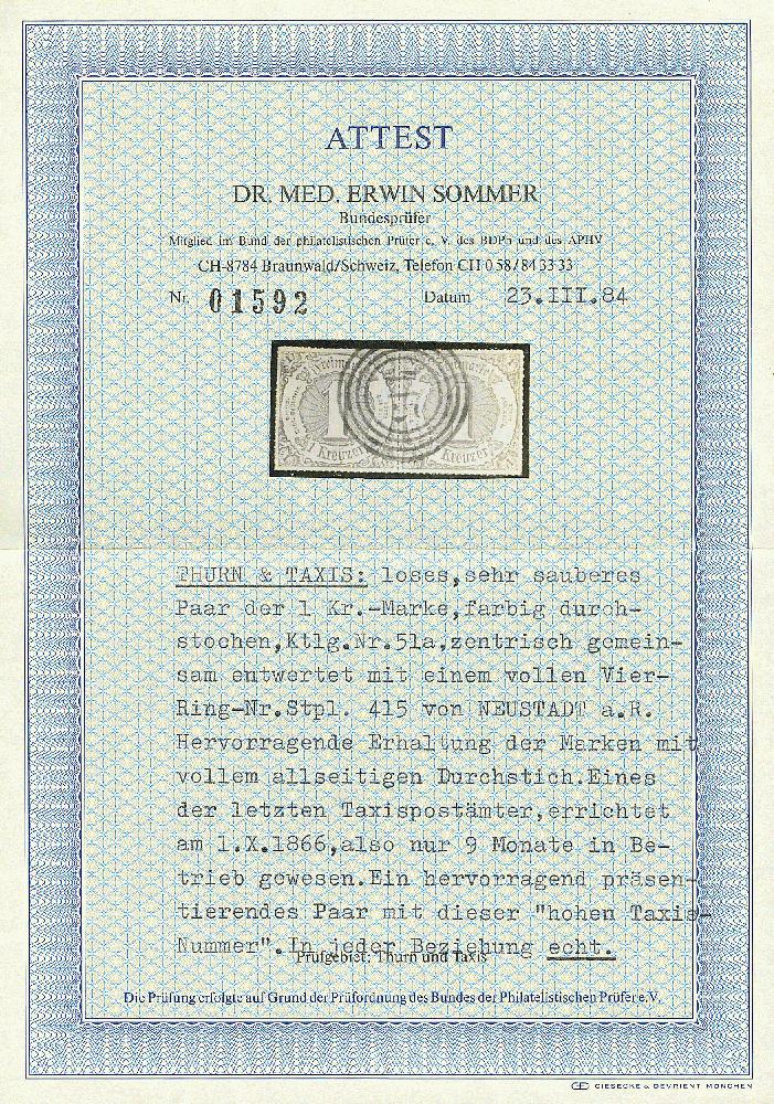 | Prüfgebiet: | Altdeutschland Thurn und Taxis |
