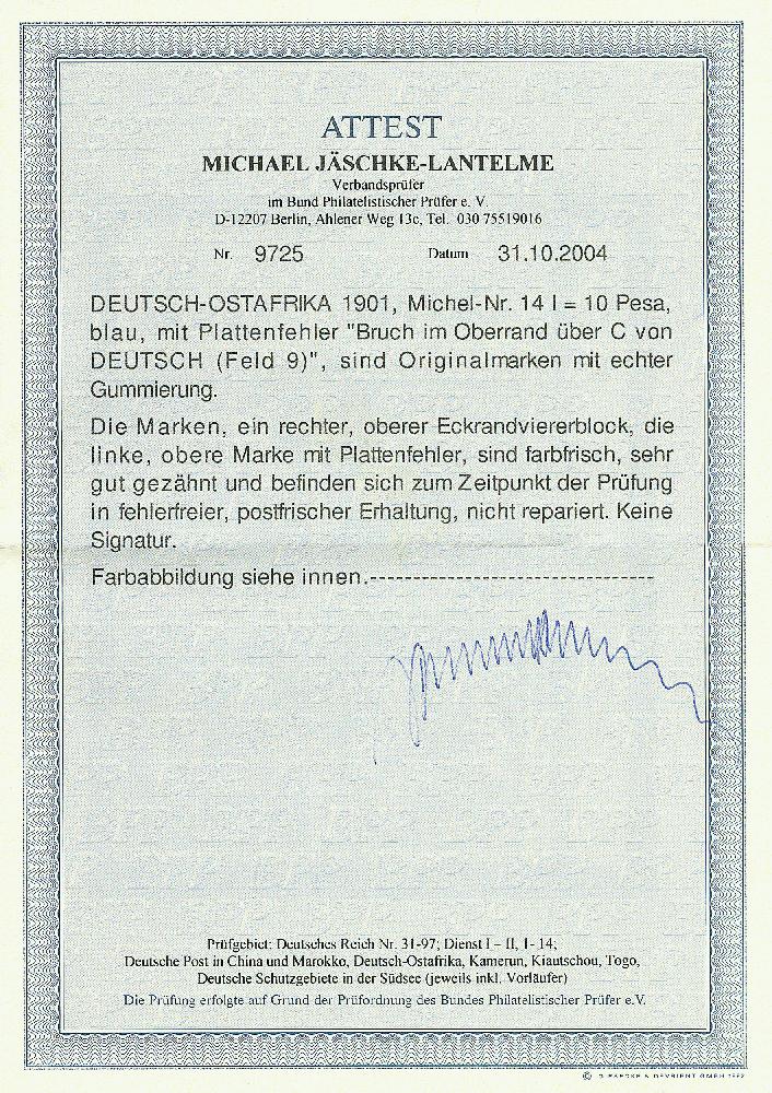 | Prüfer: | Jäschke-Lantelme, Michael (BPP (Bund Philatelistischer Prüfer)) |