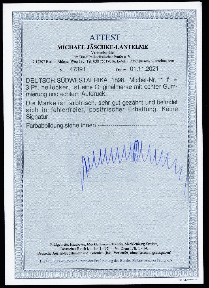 | Prüfer: | Jäschke-Lantelme, Michael (BPP (Bund Philatelistischer Prüfer)) |