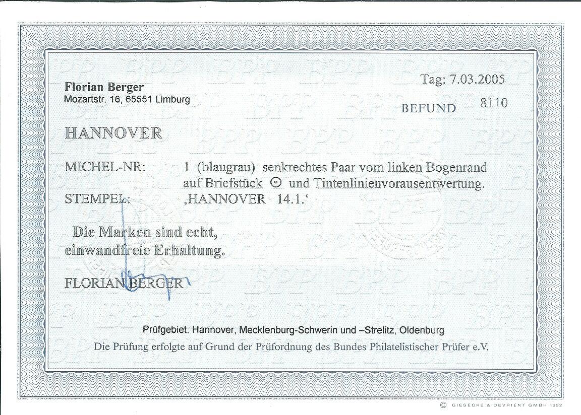 | Prüfer: | Berger, Florian (BPP (Bund Philatelistischer Prüfer)) |
