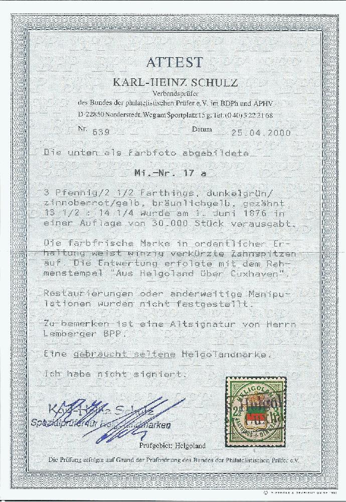 | Prüfer: | Schulz, Karl-Heinz (BPP (Bund Philatelistischer Prüfer)) |