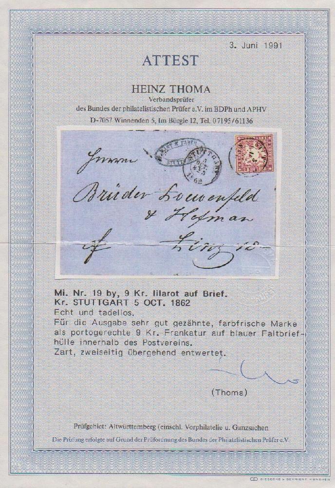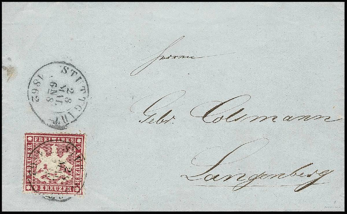 | Zusatzinformationen und Suchstichworte: | Rauhut & Kruschel - 218. Auktion 10. Juni 2023 Los 1530 Altdeutschland Württemberg 9 Kr. karmin, normal gezähnt, sowie lilarot, überdurchschnittlich gut gezähnt, zwei Prachtbriefe aus Stuttgart Ausruf 250,00 EUR |