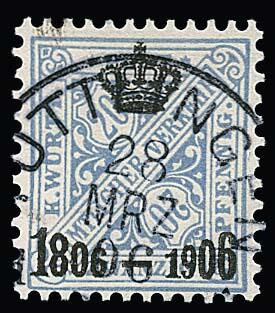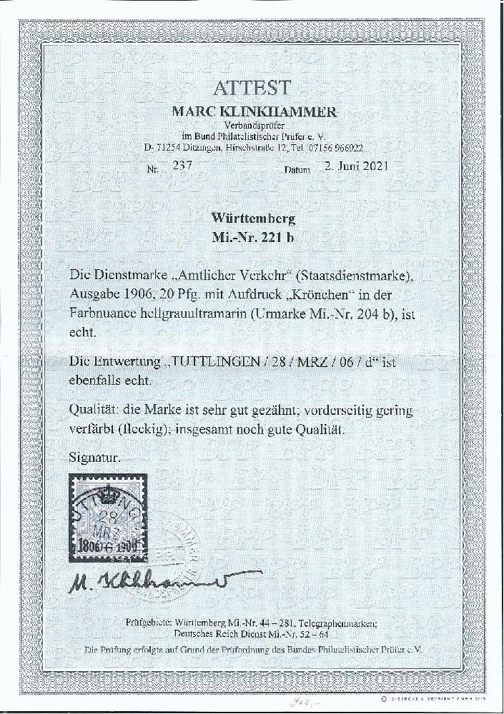 | Zusatzinformationen und Suchstichworte: | Rauhut & Kruschel - 218. Auktion 10. Juni 2023 Los 1561 Altdeutschland Württemberg 20 Pfg. Krönchenaufdruck in seltener Farbe "hellgrauultramarin" zentrisch gestempelt "Stuttgart", vs. links eine ganz kleine Verschmutzung (belanglos) Ausruf 160,00 EUR |