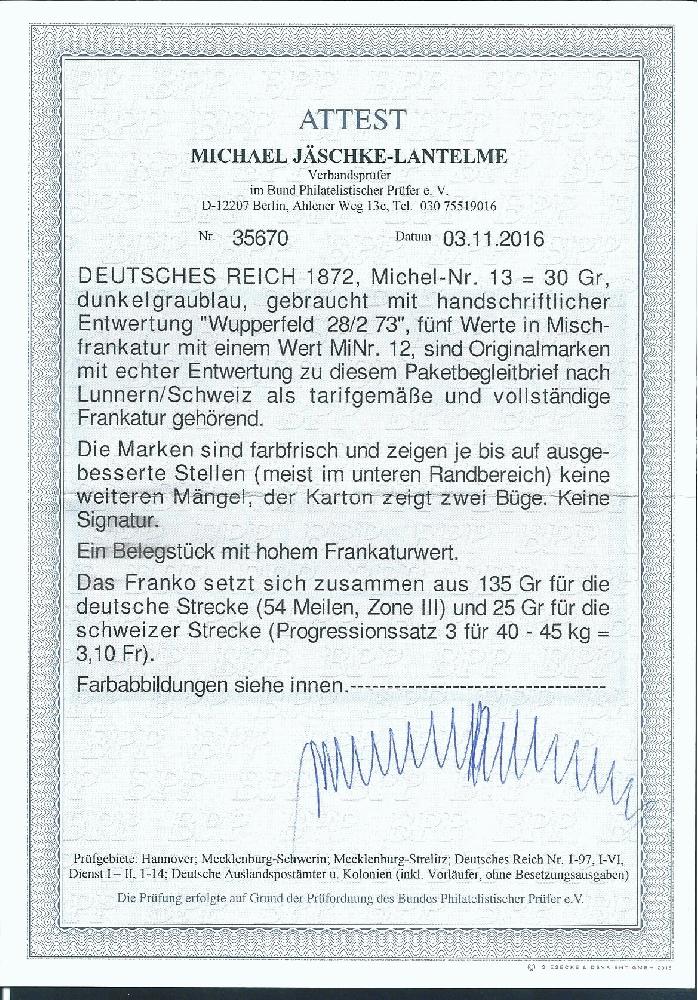 | Prüfer: | Jäschke-Lantelme, Michael (BPP (Bund Philatelistischer Prüfer)) |