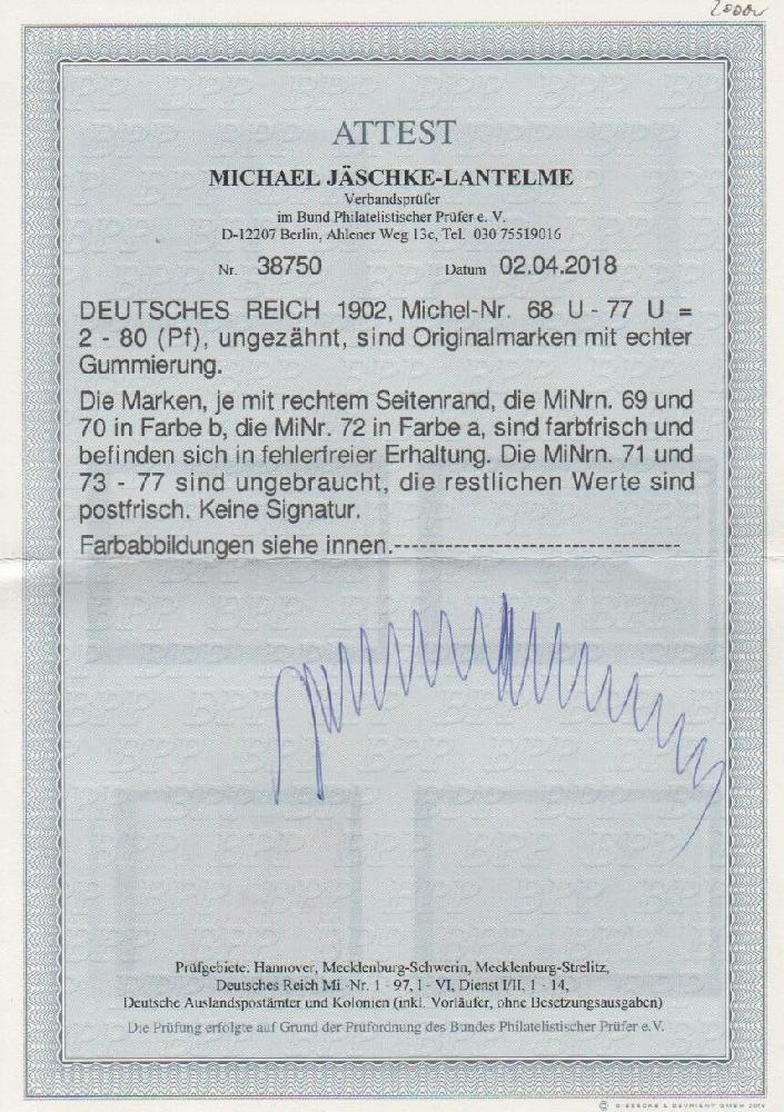 | Prüfgebiet: | Deutsches Reich 1871 - 1918 (Mi-Nr. 1 - 106) |