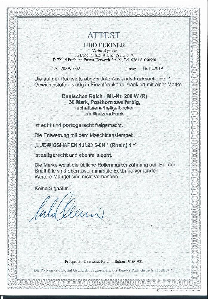 | Prüfer: | Fleiner, Udo (BPP (Bund Philatelistischer Prüfer)) |