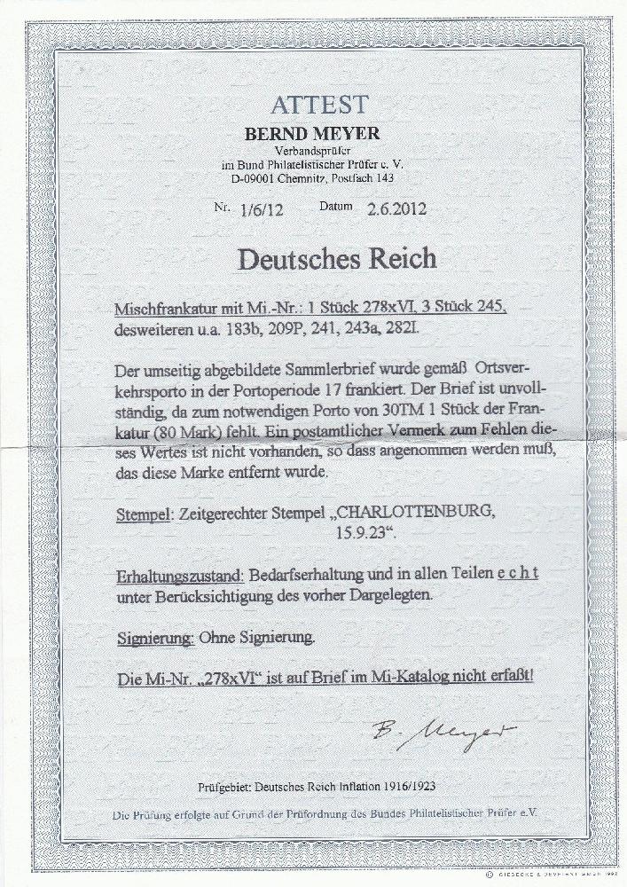 | Prüfer: | Meyer, Bernd (BPP (Bund Philatelistischer Prüfer)) |