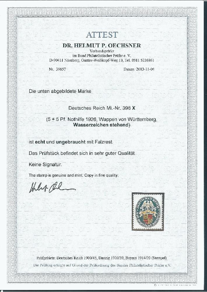 | Prüfgebiet: | Deutsches Reich 1924 - 1932 (Mi-Nr. 344 - 478) |