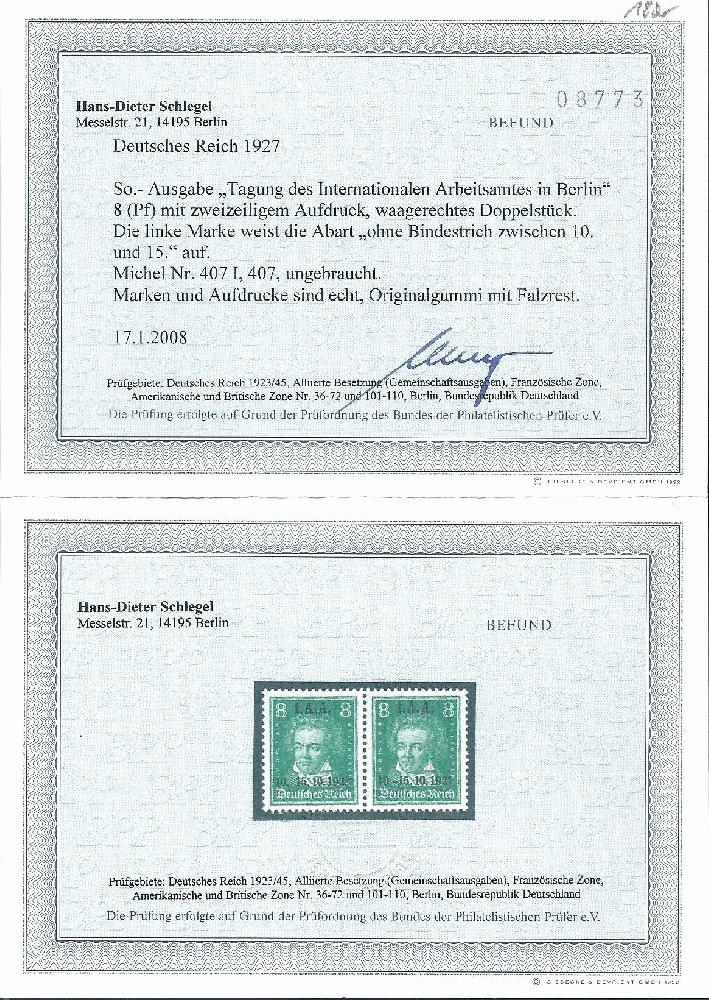 | Prüfgebiet: | Deutsches Reich 1924 - 1932 (Mi-Nr. 344 - 478) |