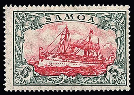 | Zusatzinformationen und Suchstichworte: | Rauhut & Kruschel - 218. Auktion 10. Juni 2023 Los 2468 Deutsche Kolonien Samoa, Vorläufer 5 Mk. Kaiseryacht mit Wasserzeichen, Friedensdruck, ungebr., Fotoexp. Jäschke-L. "in fehlerfreier, ungebrauchter Erhaltung". Mi. 220,- Ausruf 50,00 EUR |