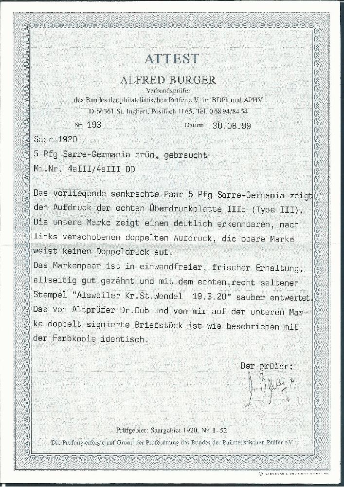 | Prüfer: | Burger, Alfred (BPP (Bund Philatelistischer Prüfer)) |