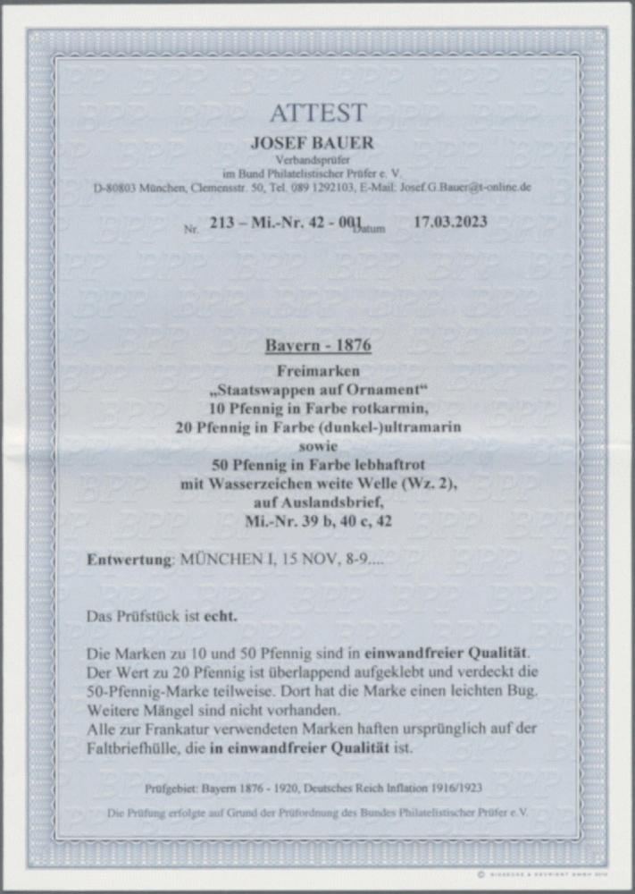 | Zusatzinformationen und Suchstichworte: | Christoph Gärtner 56. Auktion 12. - 16. Juni 2023 Los 4540 D Altdeutschland Bayern 1876, 50 Pf. Wappen lebhaftrot mit Wz.2 mit ZuF auf Gerichtsbrief der 4.Gewichtsstufe von München nach Bern, laut neuest.FFA Bauer/BPP echt und einwandfrei, Mi.2200.- Zuschlag 660,00 EUR |