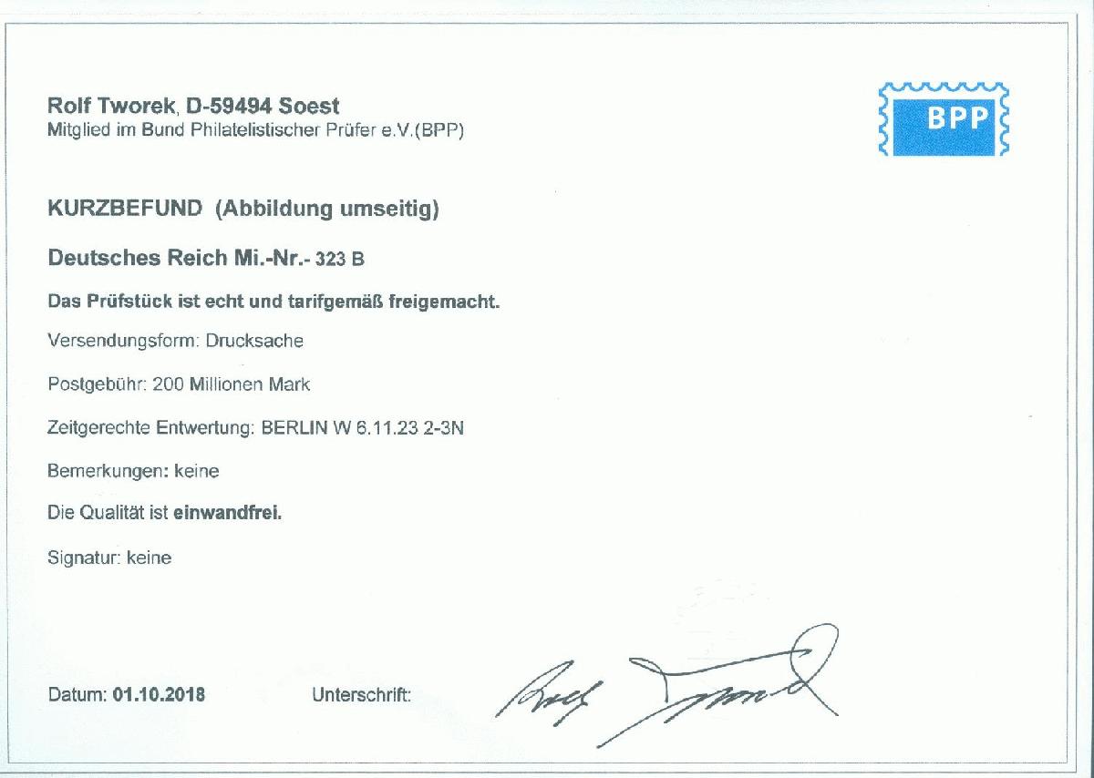| Zusatzinformationen und Suchstichworte: | Einzelfrankatur der Mi 323 B auf Drucksache |