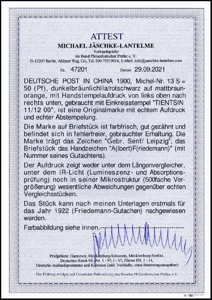 | Prüfgebiet: | Deutsche Auslandspostämter China |