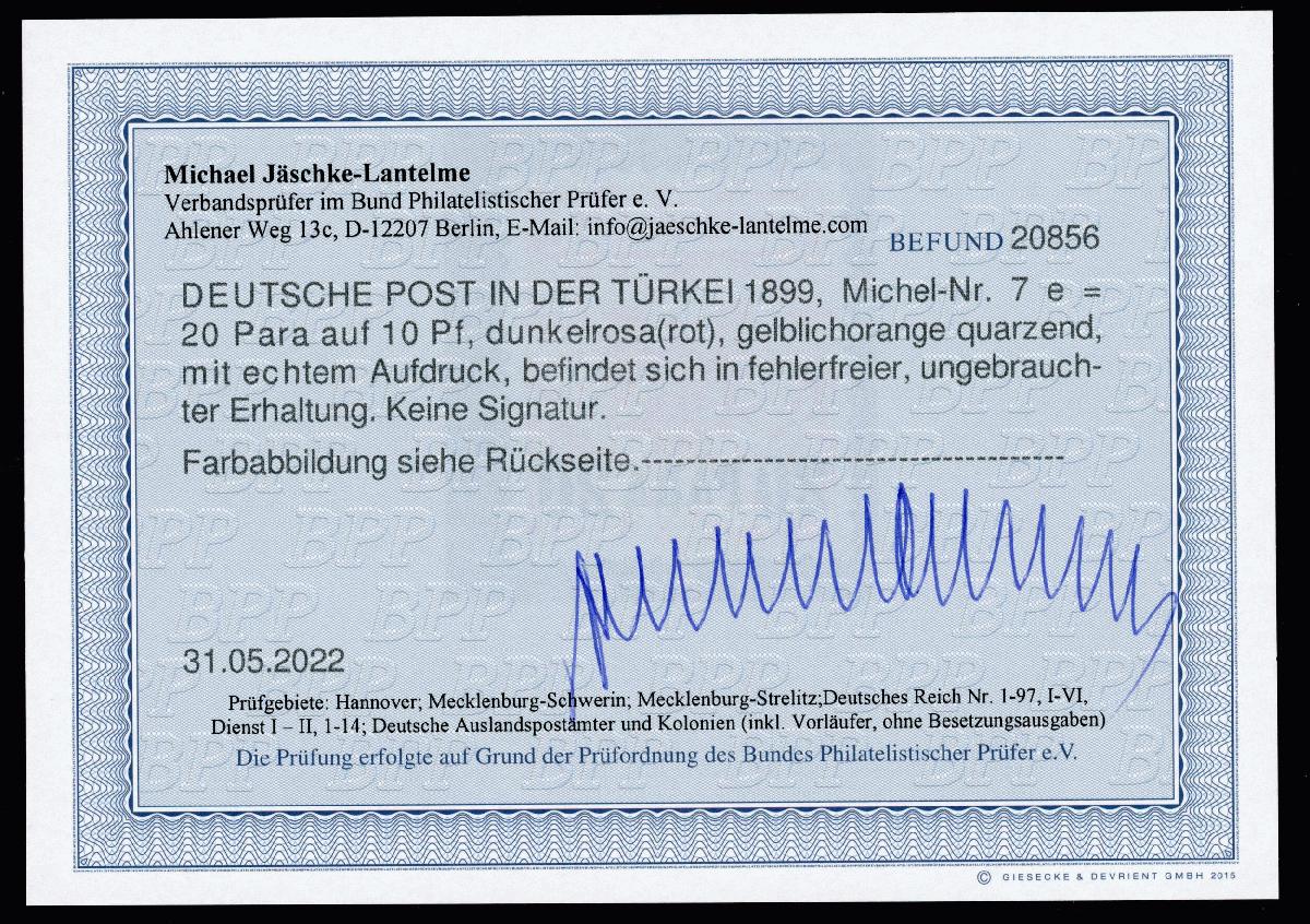 | Prüfgebiet: | Deutsche Auslandspostämter Türkei |