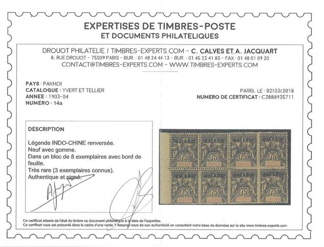 | Prüfgebiet: | Französisch-Indochinesische Post in China - Pakhoi |
