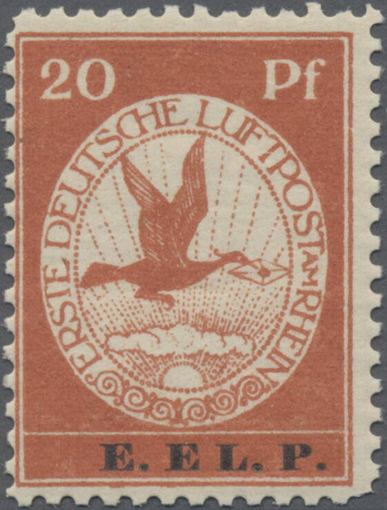 | Zusatzinformationen und Suchstichworte: | Christoph Gärtner 56. Auktion 12. - 16. Juni 2023 Los 4863 D Deutsches Reich 1912, Flugpost Rhein/Main, 20 Pfg. E.EL.P. postfrisch, unsigniert. Kurzbefund C.Brettl BPP "einwandfrei". Mi. 450,- €. Ausruf 100,00 EUR |
