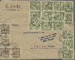 | Zusatzinformationen und Suchstichworte: | Christoph Gärtner 56. Auktion 12. - 16. Juni 2023 Los 4895 D Deutsches Reich, 1918/23 Inflationsausgaben 1923, Freimarke Korbdeckelmuster 4 Millionen grünlicholiv im Walzendruck, fünfzig Stück in Mischfrankatur mit vier Stück 200 Millionen auf portogerechtem Brief ab "NÜRNBERG 2.B.A. 6. NOV. 23 * 7-8N d" nach Halle/ Saale. Die Marken befinden sich durch Randbeklebung in unterschiedlicher, meist einwandfreier Qualität, die Briefhülle weist die üblichen Beförderungsspuren auf Ausruf 250,00 EUR |