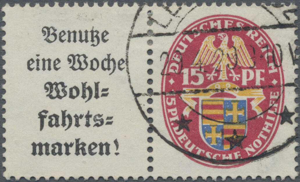 | Zusatzinformationen und Suchstichworte: | Christoph Gärtner 56. Auktion 12. - 16. Juni 2023 Los 4984 D Deutsches Reich, 1923/32 Weimarer Republik 1928, Nothilfe, A 2+15 Pfg., waagerechter Zusammendruck klar gestempelt "LEIPZIG W 32 29.4.29" Zuschlag 65,00 EUR |