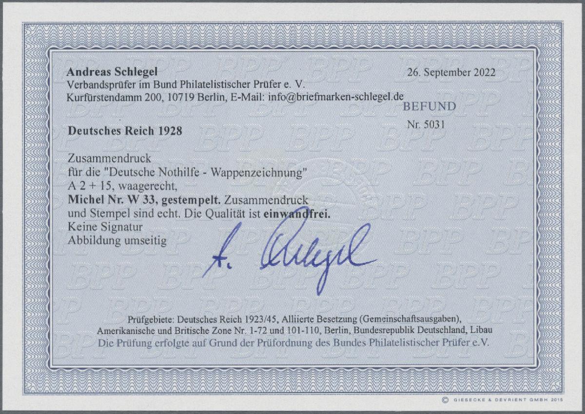 | Prüfer: | Schlegel, Andreas (BPP (Bund Philatelistischer Prüfer)) |