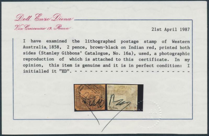| Zusatzinformationen und Suchstichworte: | 248. Abacus Auktion Auktionstermin: 20. - 22. Juli 2022 Los 753 Westaustralien 1857-59 Hillman Lithographien ungezähnt 2d braunschwarzer/rot auf beide Seiten gedruckt SG 15a mit dem Prägung auf der Rückseite aufrecht abhängig von die Gesicht aber bedeutend verschoben, gerandet dicht bei große mit ein Fragment des angrenzend Einheit auf der linken Seite, winzige inkstain erstellt die untere linke Ecke erscheinen fehlen, hell void-grid Entwertung, Katalogwert £900. Ex Michael Haden: verkauft zu unser Versteigerung von 18,12,2010 für $442. Enzo Diena Attest (1987) Bundesländer (übersetzt) "in perfektem Zustand" Ausruf 380,00 AUD |