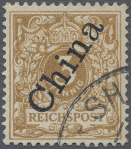 | Zusatzinformationen und Suchstichworte: | Christoph Gärtner 56. Auktion 12. - 16. Juni 2023 Los 5120 D Deutsche Auslandspost China 1898, Adler, steiler Aufdruck, 3 Pfg. hellocker, mit Stempel SHANGHAI, Prachtstück, seltene Farbnuance Ausruf 200,00 EUR |