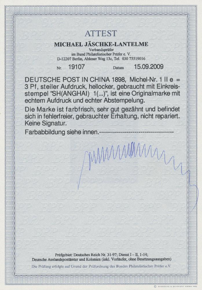 | Prüfgebiet: | Deutsche Auslandspostämter China |