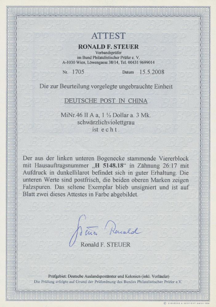 | Prüfer: | Steuer, Ronald F. (BPP (Bund Philatelistischer Prüfer)) |