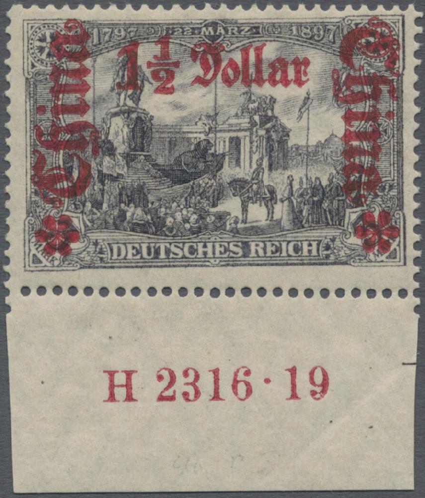 | Zusatzinformationen und Suchstichworte: | Christoph Gärtner 56. Auktion 12. - 16. Juni 2023 Los 5140 D Deutsche Auslandspost China 1919, Germania mit Wasserzeichen, Kriegsdruck, 1 1/2 Dollar auf 3 Mk., postfrisches Unterrandstück mit HAN H 2316.19 Zuschlag 80,00 EUR |