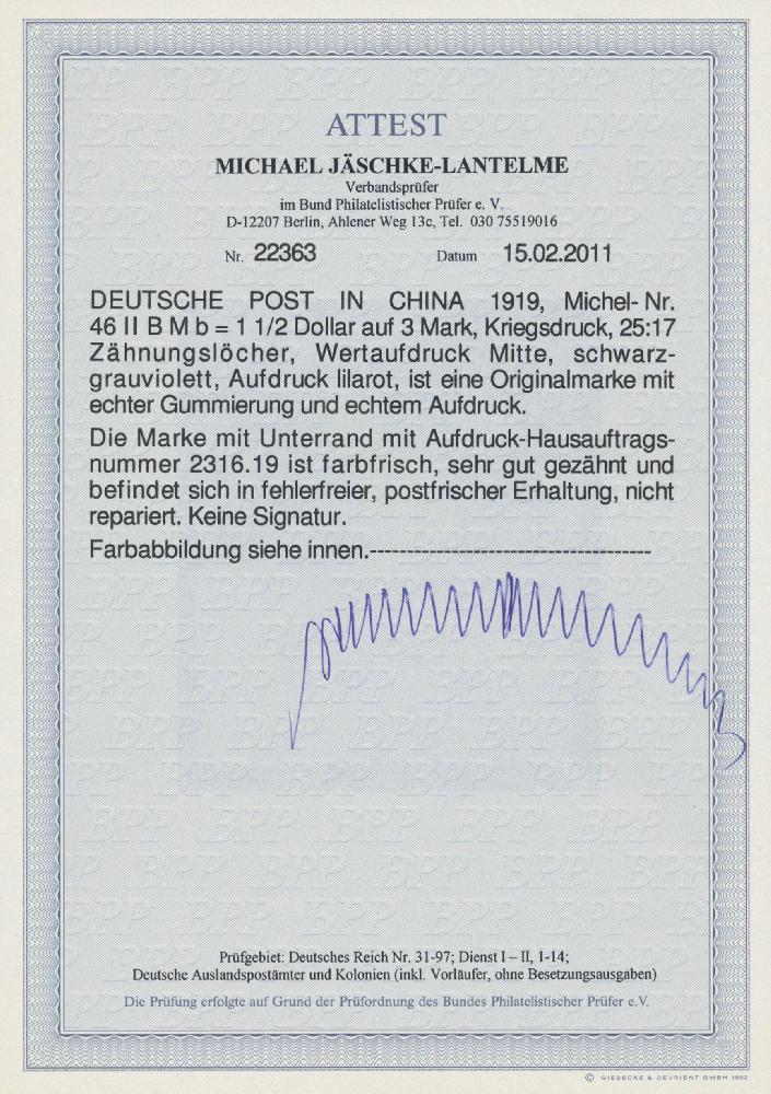 | Prüfer: | Jäschke-Lantelme, Michael (BPP (Bund Philatelistischer Prüfer)) |