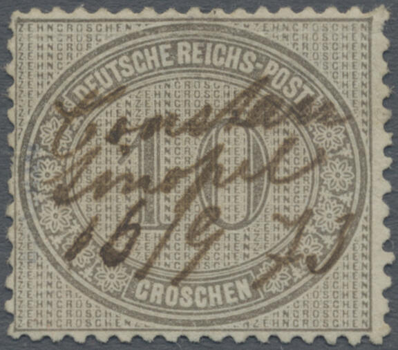 | Zusatzinformationen und Suchstichworte: | Christoph Gärtner 56. Auktion 12. - 16. Juni 2023 Los 5171 D Deutsche Auslandspost Türkei, Vorläufer INNENDIENSTMARKE, 10 Gr., mit wie bei dieser üblichen Qualitätseinschränkungen, handschriftliche Entwertung CONSTANTINOPEL 16/9/73, gepr. Bothe BPP sowie Foto-Attest (1979): "die Marke ist als ansprechendes Albumstück zu bezeichnen", Mi 2000,- Zuschlag 400,00 EUR |