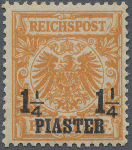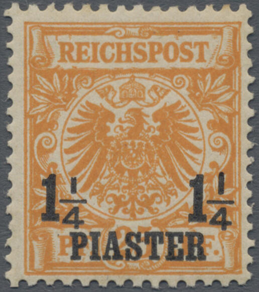 | Zusatzinformationen und Suchstichworte: | Christoph Gärtner 56. Auktion 12. - 16. Juni 2023 Los 5195 D Deutsche Auslandspost Türkei 1889, Adler, 1 1/4 P. auf 25 Pfg. mit Aufdruckfehler I, ungebrauchtes Prachtstück, wie postfrisch, Foto-Attest Dr. Hollmann BPP, Mi 300,- Zuschlag 90,00 EUR |