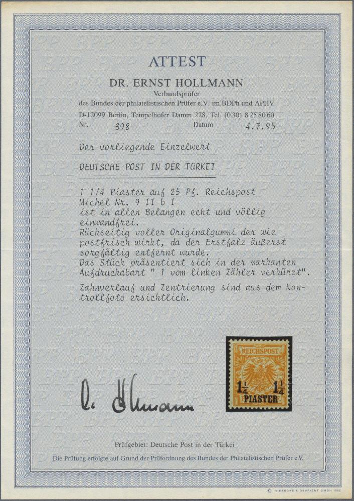 | Prüfer: | Hollmann, Ernst J. (BPP (Bund Philatelistischer Prüfer)) |