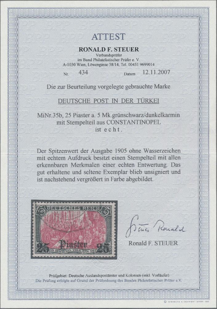 | Prüfgebiet: | Deutsche Auslandspostämter Türkei |