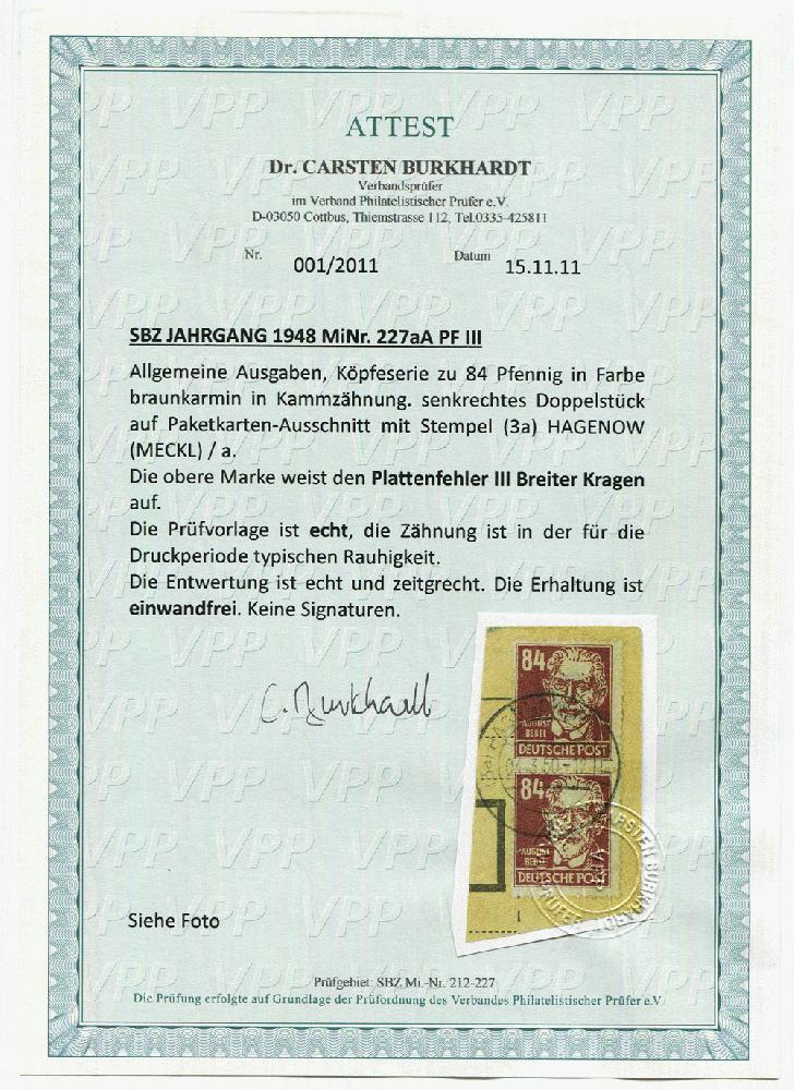 | Prüfer: | Burkhardt, Carsten (VP (Verband Philatelistischer Prüfer)) |