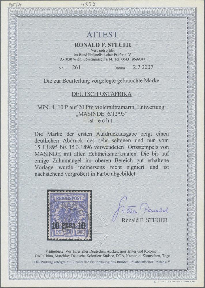 | Prüfer: | Steuer, Ronald F. (BPP (Bund Philatelistischer Prüfer)) |