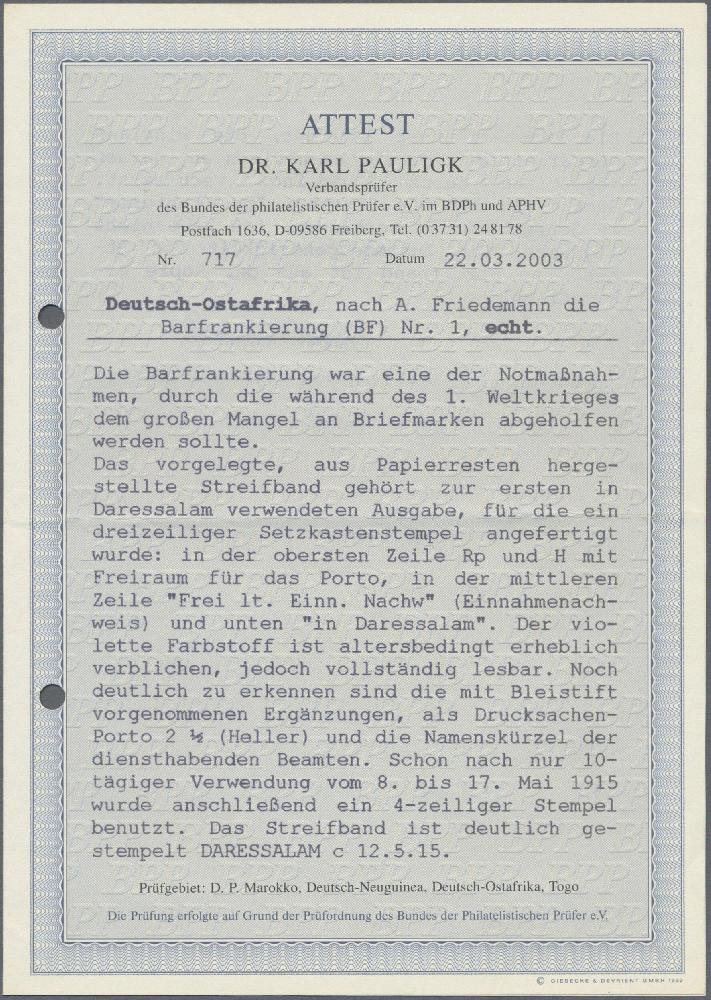 | Prüfer: | Pauligk, Karl (BPP (Bund Philatelistischer Prüfer)) |