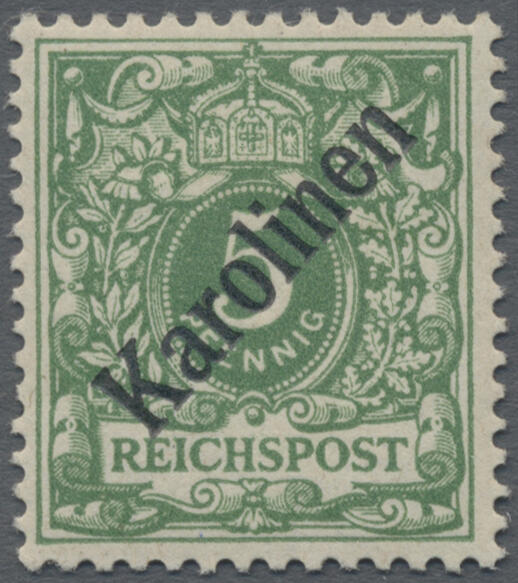 | Zusatzinformationen und Suchstichworte: | Christoph Gärtner 56. Auktion 12. - 16. Juni 2023 Los 5294 D Deutsche Kolonien Karolinen 1899, Adler, diagonaler Aufdruck, 5 Pfg., ungebraucht, Prachtstück Ausruf 150,00 EUR |