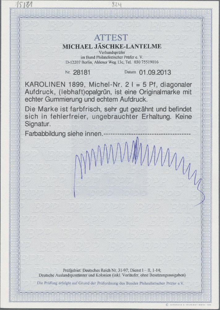 | Prüfer: | Jäschke-Lantelme, Michael (BPP (Bund Philatelistischer Prüfer)) |