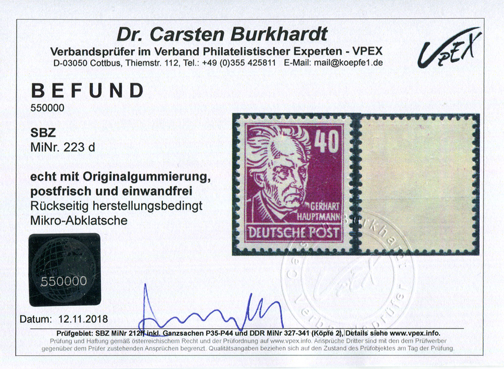| Prüfer: | Burkhardt, Carsten (VPEX (Verband Philatelistischer Experten)) |