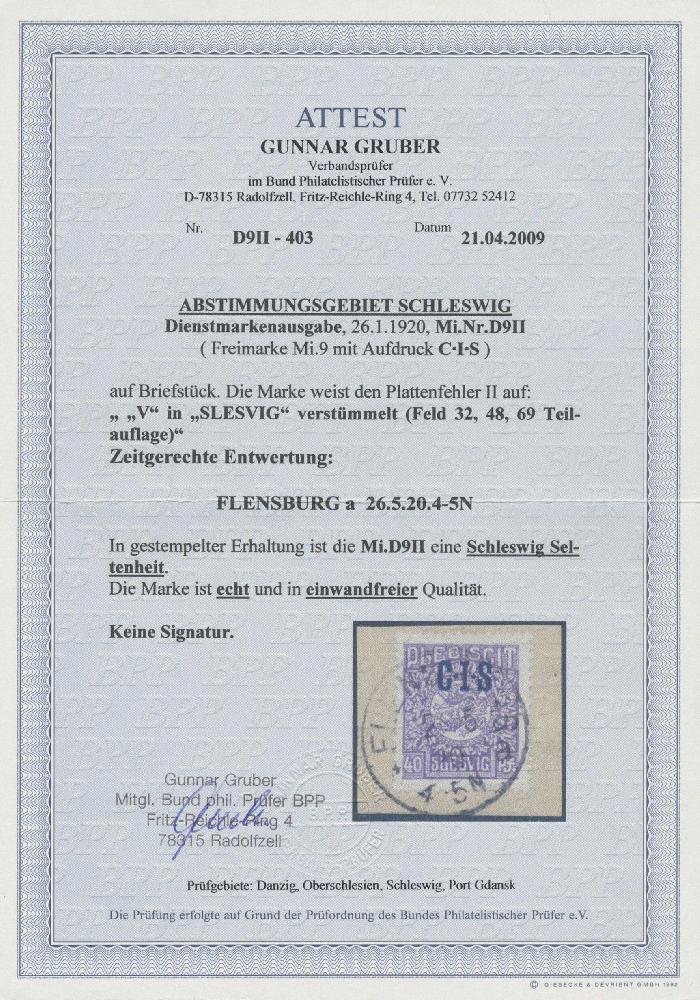 | Zusatzinformationen und Suchstichworte: | Christoph Gärtner 56. Auktion 12. - 16. Juni 2023 Los 5495 D Deutsche Abstimmgeb. Schleswig 1920, 40 Pf violett mit dunkelblauem Aufdruck "C.I.S.", und Plattenfehler "Verstümmeltes V in Schlesvig", gestempelt K1 "Flensburg a 26.5.20" Ausruf 700,00 EUR |
